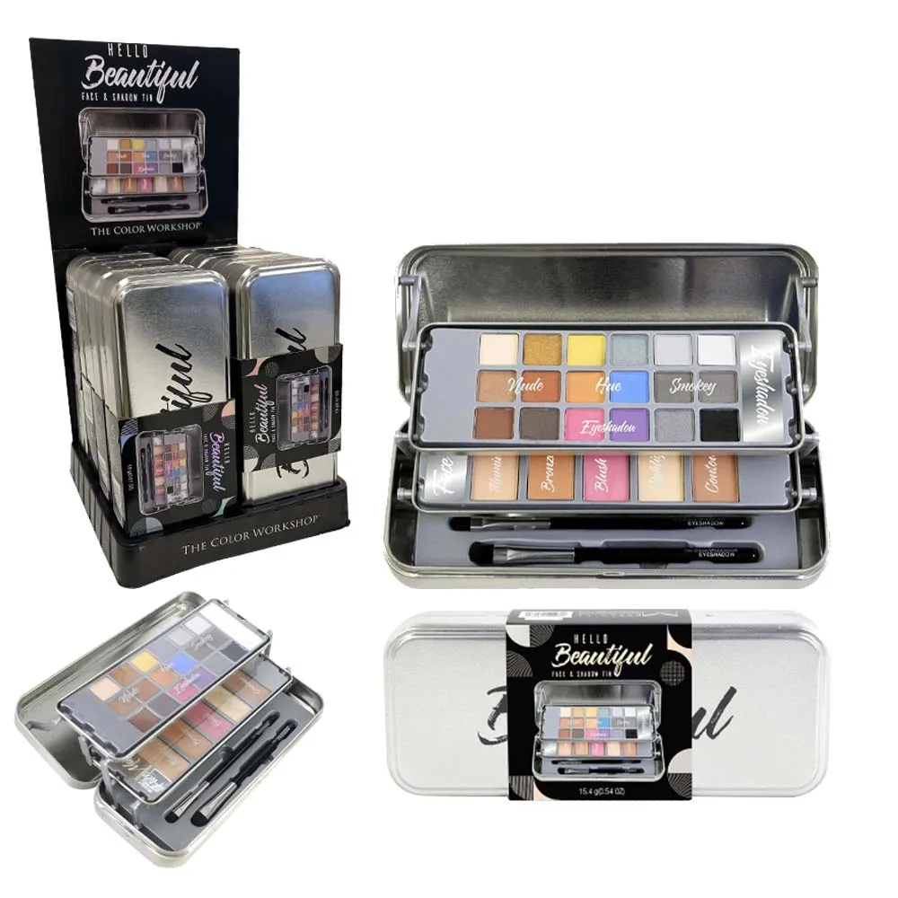 Markwins Hello Beautiful Face & Eye Tin includes a curated selection of face and eye makeup in a compact tin, perfect for everyday use or gifting.