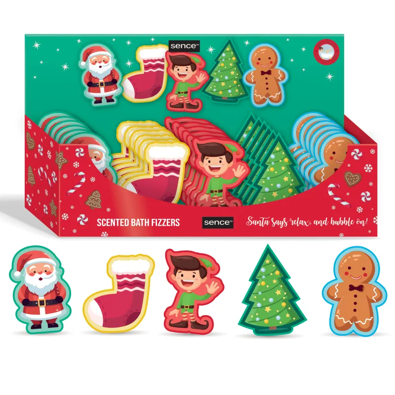 2040943 SENCE COLLECTION XMAS BATH FIZZERS 60g DISP x30