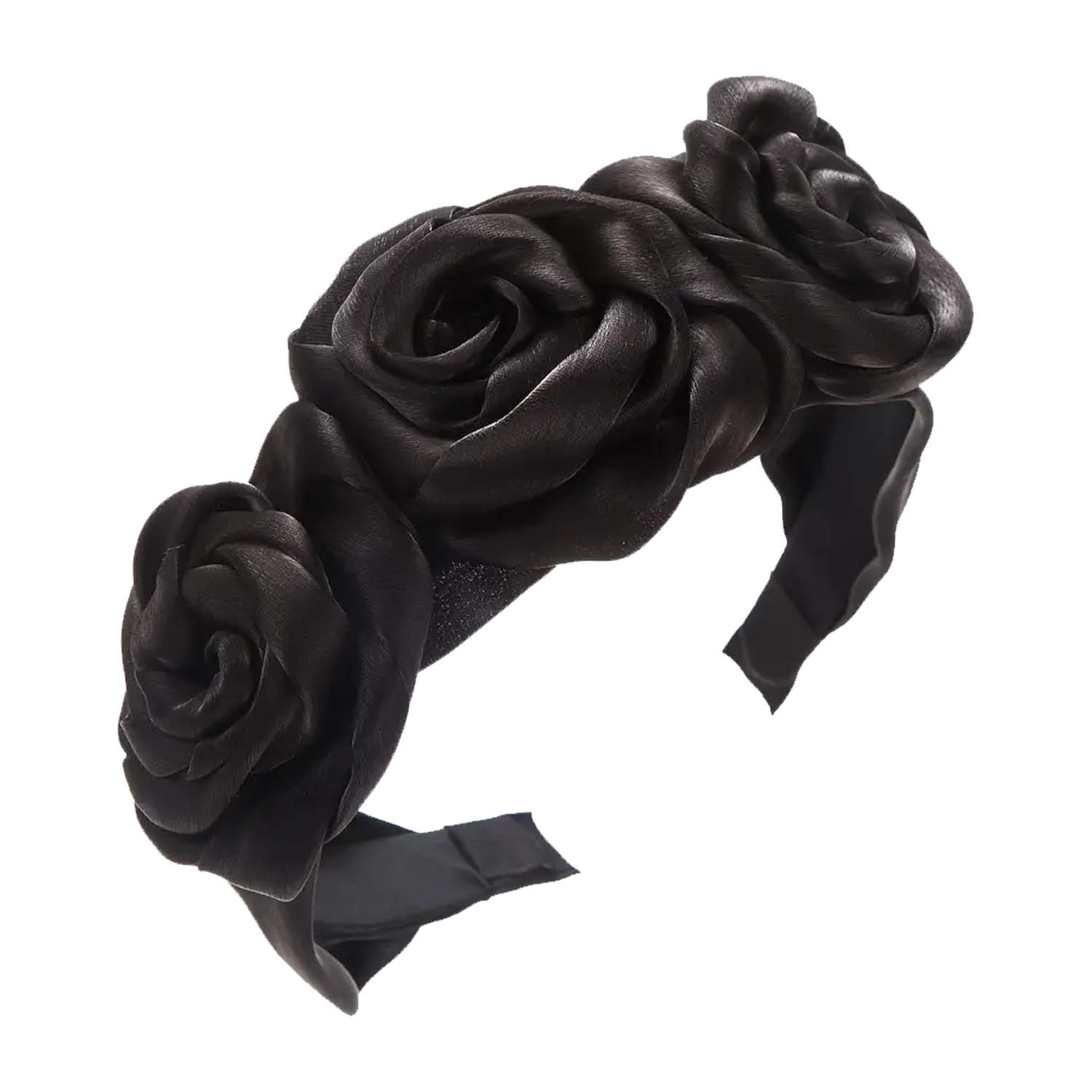 3 ROSE SATIN H/BAND BLACK