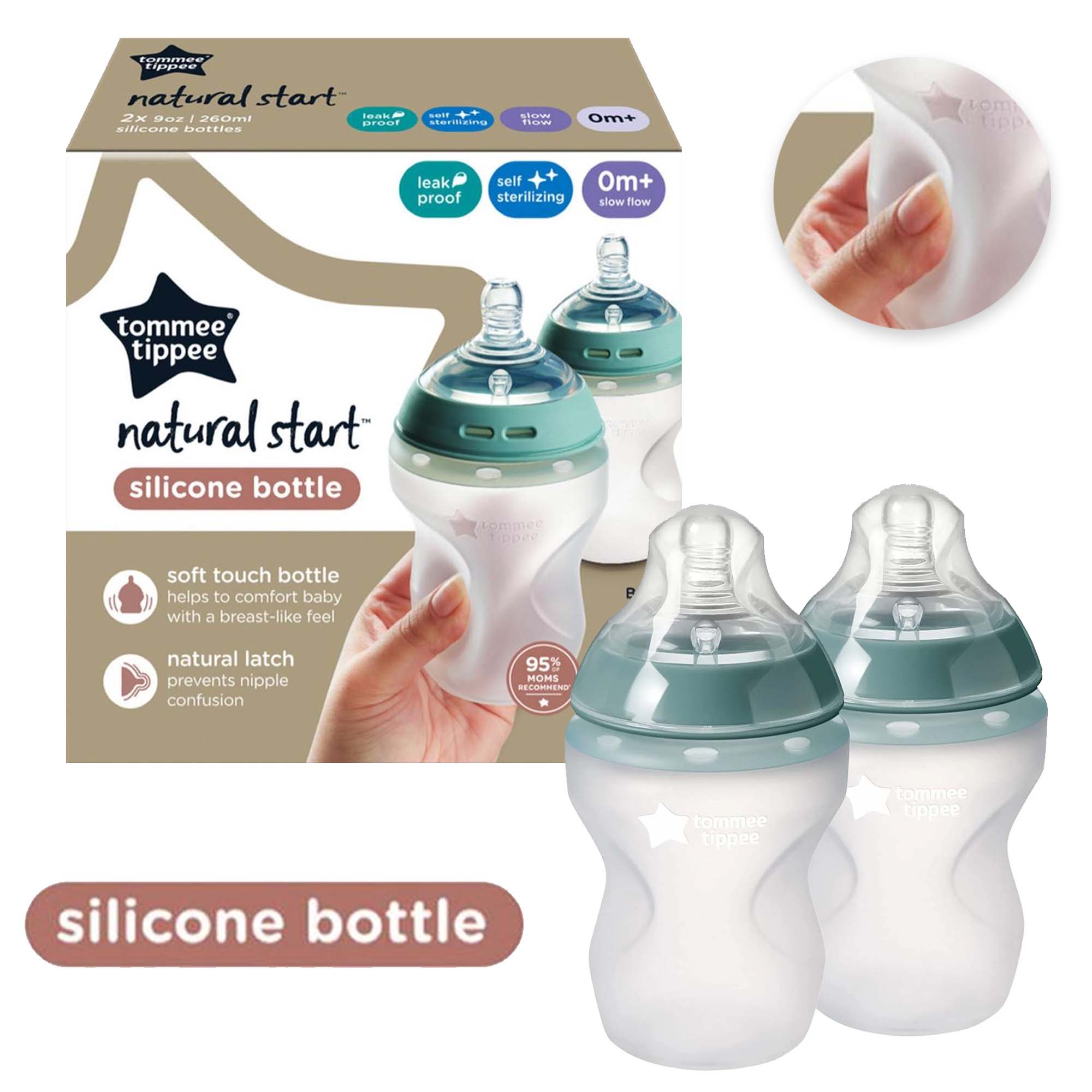 Two silicone Natural Start bottles designed for comfort and flexibility.
