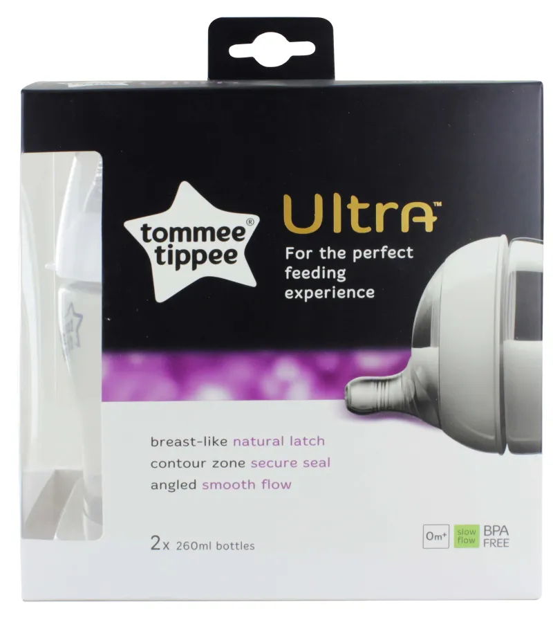 Set of two 260ml Ultra bottles designed for natural latch and comfort.