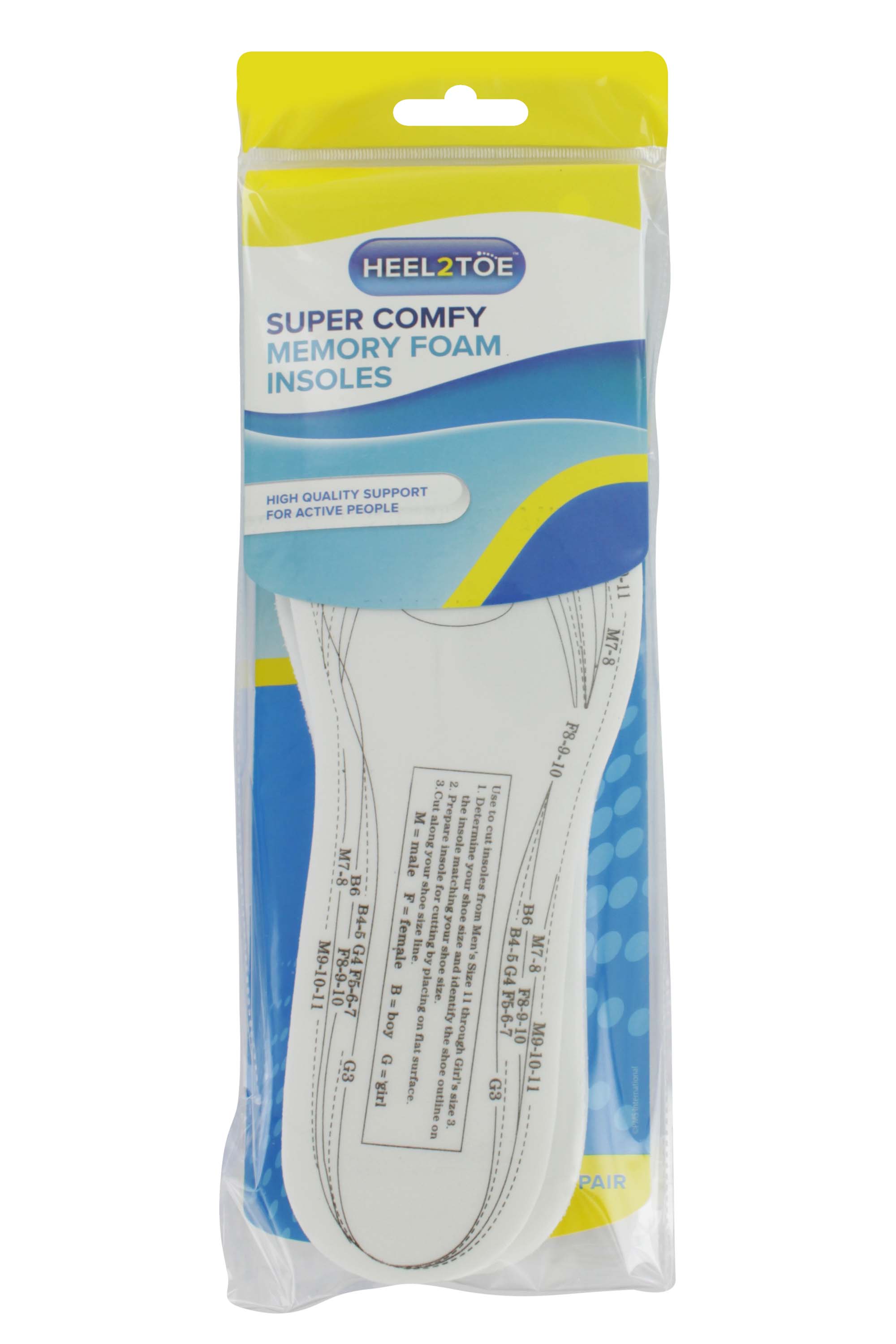 Soft, cushioned insoles with memory foam that moulds to the shape of your feet for personalised comfort and support. Ideal for everyday wear. Trim to fit.
