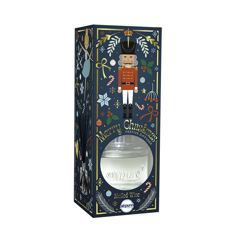 A festive reed diffuser in a decorative Nutcracker design, infused with a warm mulled wine scent to freshen and charm any space