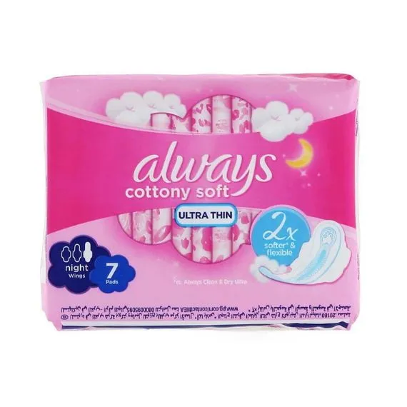 Stay protected and comfortable overnight with Always 7s Ultra Thin Night Pads with Wings. Extra-long and absorbent, these pads provide leak-free coverage and soft, breathable comfort for a worry-free night.
