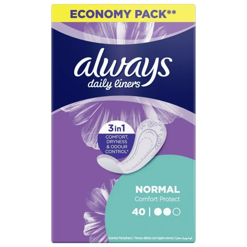 Triple-action liners providing comfort, protection, and absorbency for daily use.