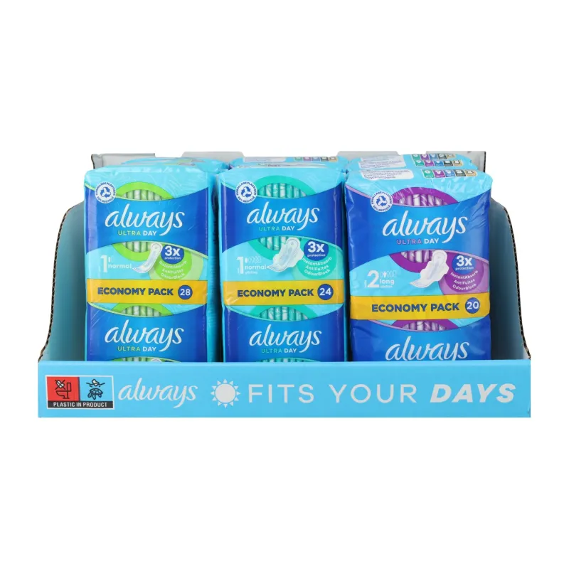 Economy pack of ultra sanitary pads offering reliable day-time protection.