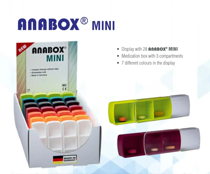ANABOX MINI 3 PART PILL BOX DISPLAY x 28