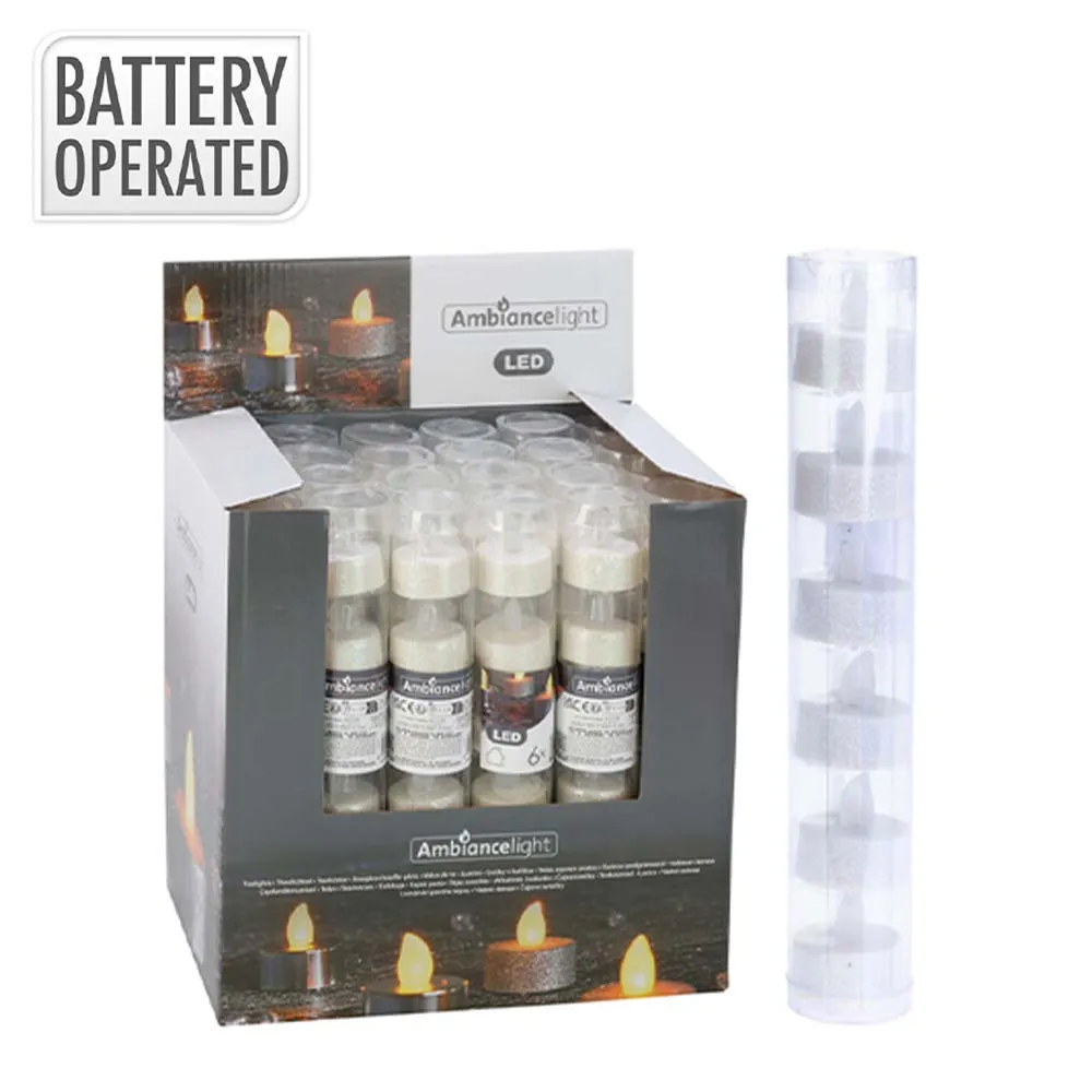 AX5990640 TEALIGHT LED WHITE GLITT 6pce disp x24
