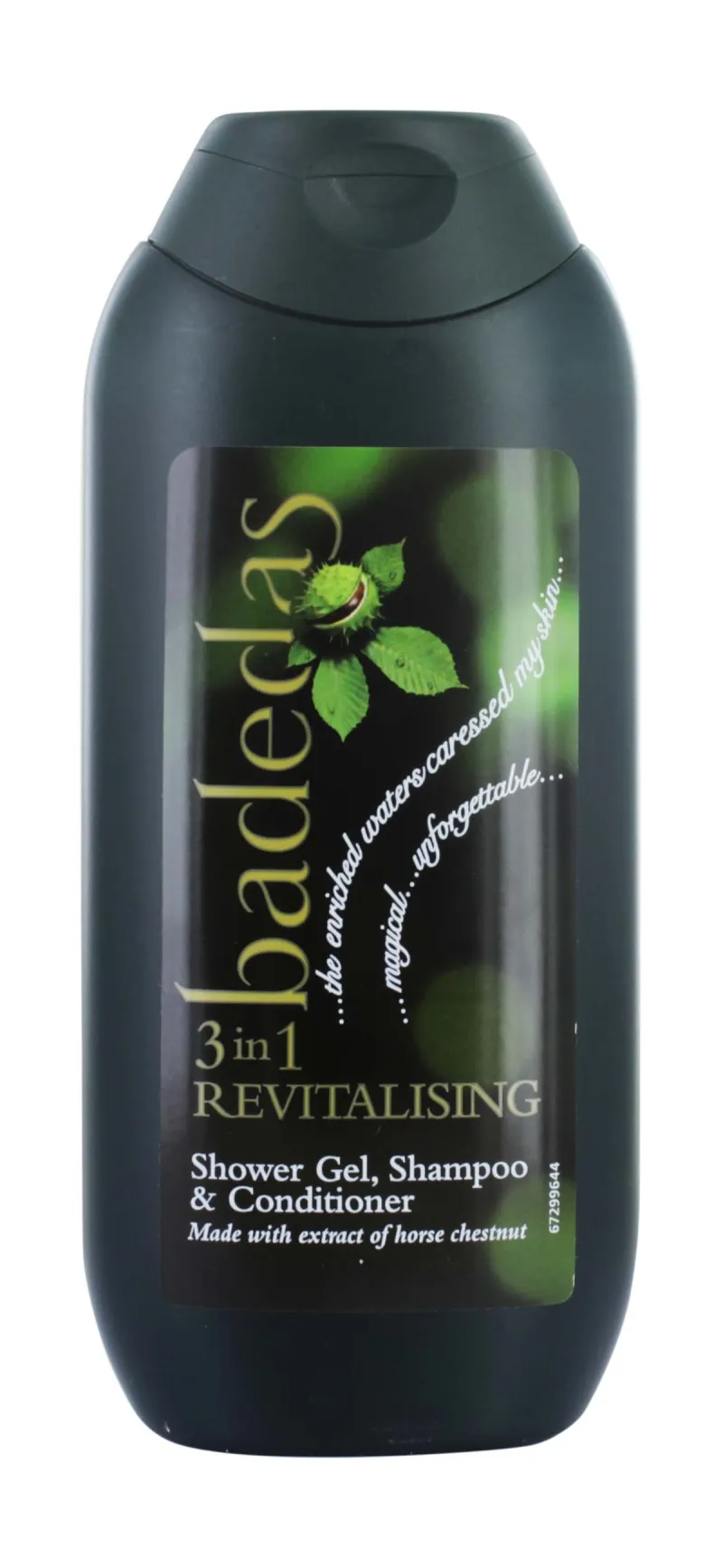 Invigorating 3 in 1 shower gel for body, hair and face.