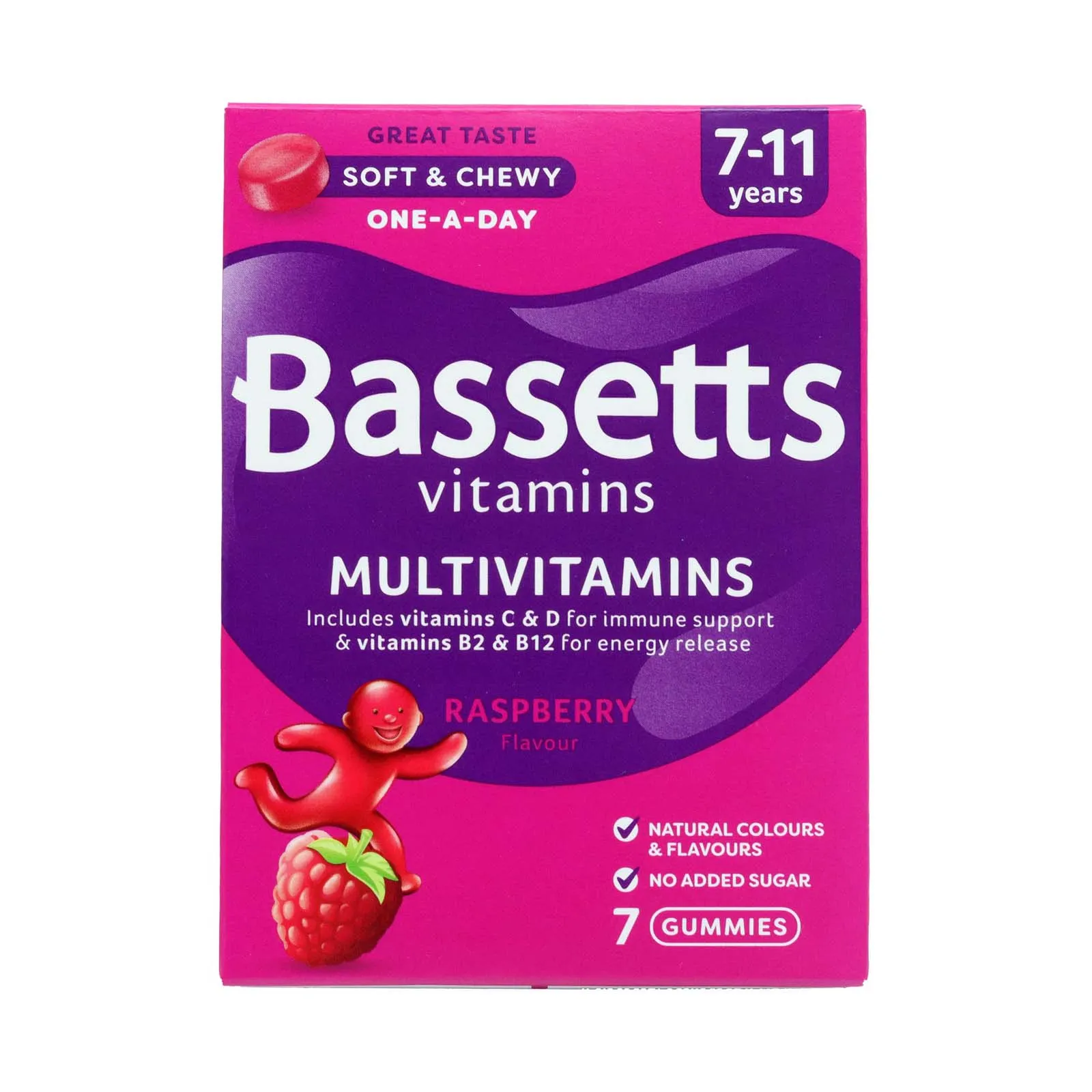 Tasty raspberry-flavoured gummy vitamins formulated to support the daily nutritional needs of children aged 7–11. Contains essential vitamins to help maintain overall health, growth, and development.