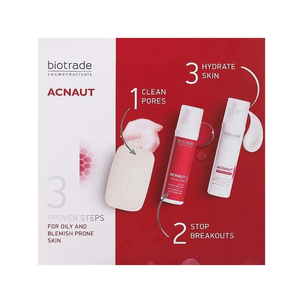 Biotrade ACNAUT 3 Proven Steps Kit is a complete skincare system designed to target acne-prone and oily skin. This three-step routine works to cleanse, treat, and control breakouts while helping to reduce excess oil and prevent new blemishes. Ideal for building a consistent, effective acne-care routine.
