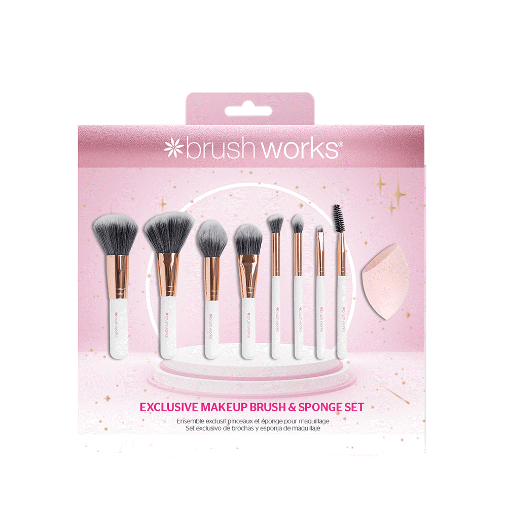 Comprehensive set featuring brushes and sponges for versatile makeup application.