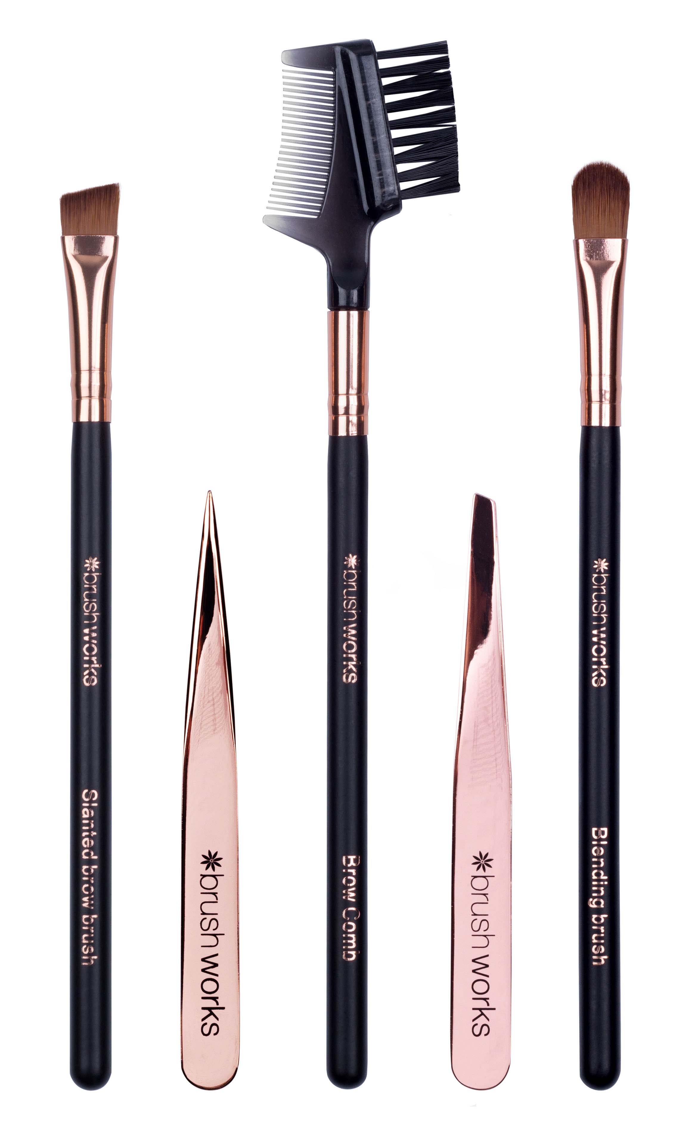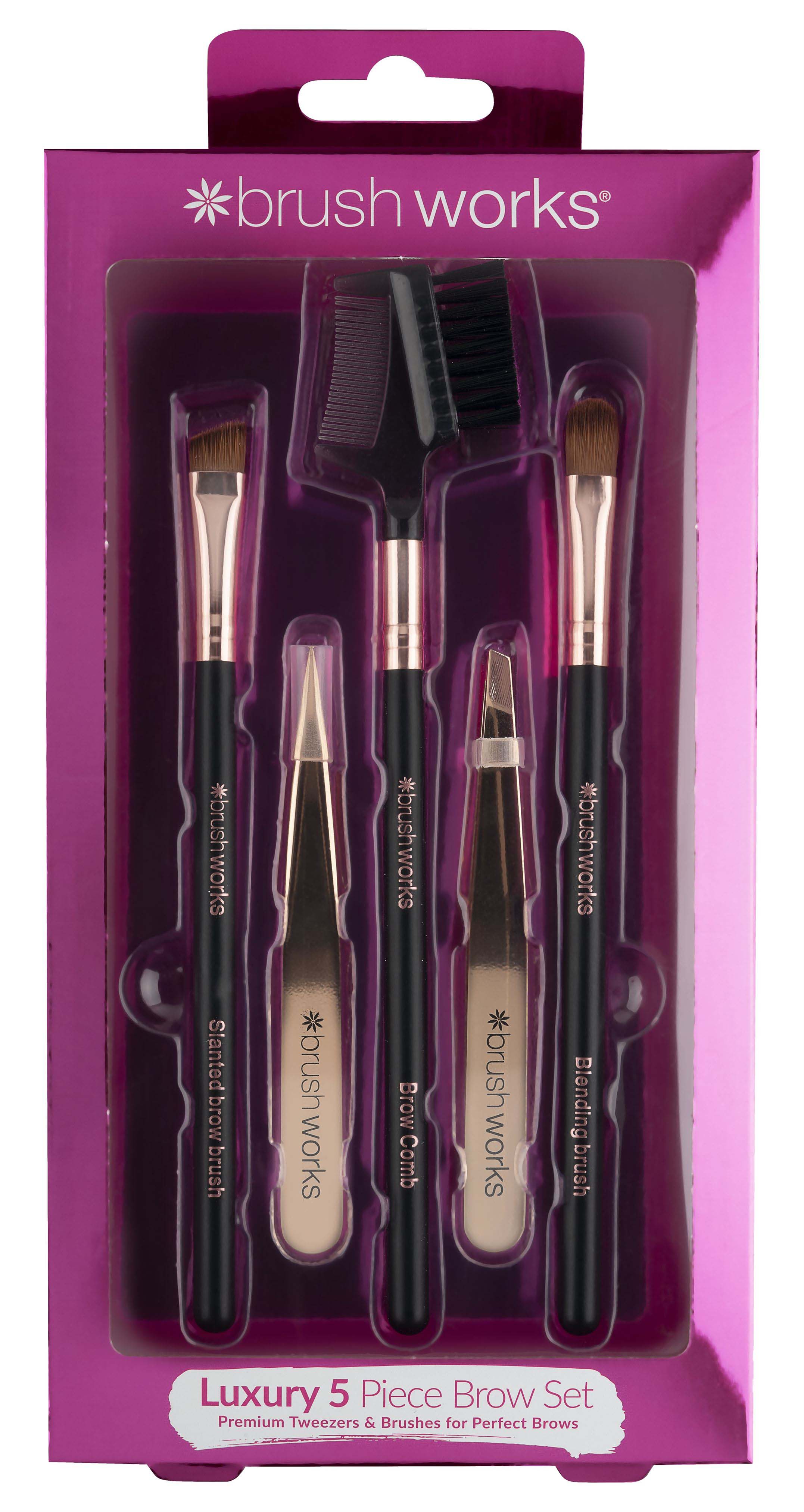 Five-piece luxury brow grooming set for shaping, defining, and styling brows.