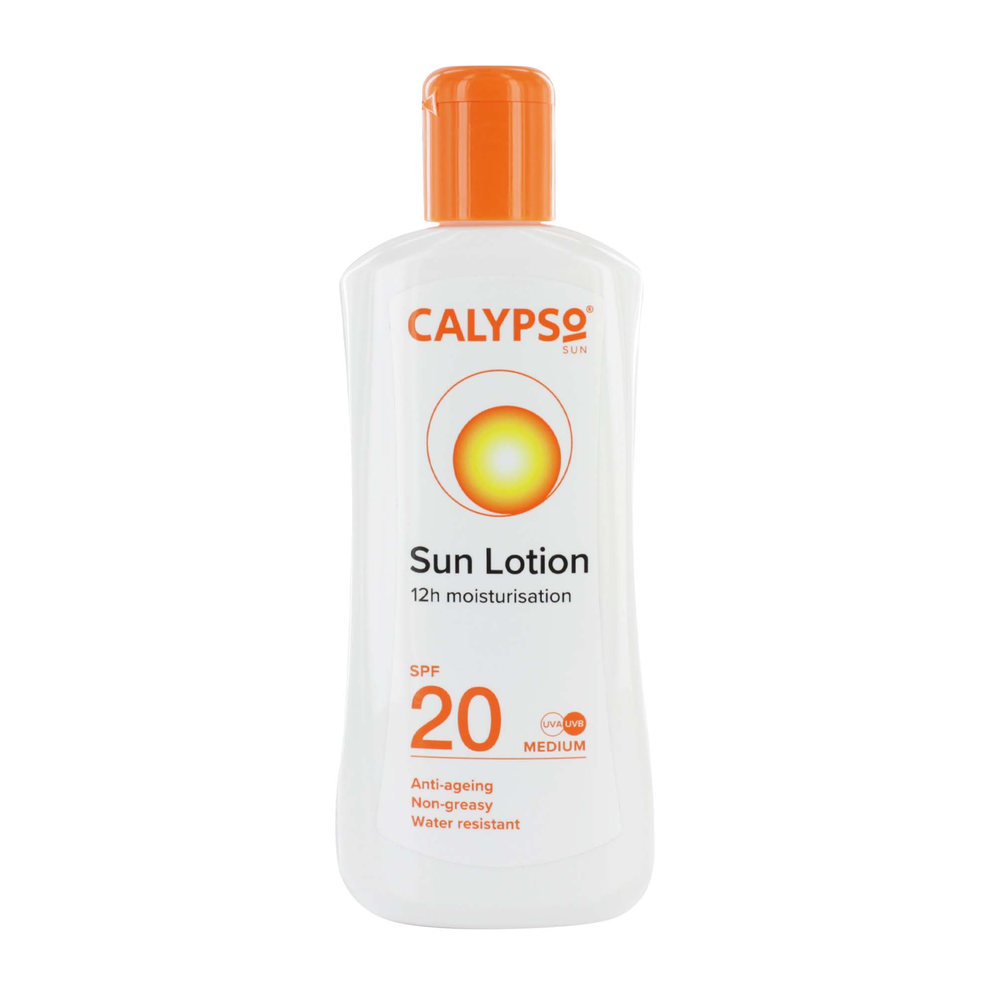 Sun lotion with SPF20 offering moderate protection and skin hydration.