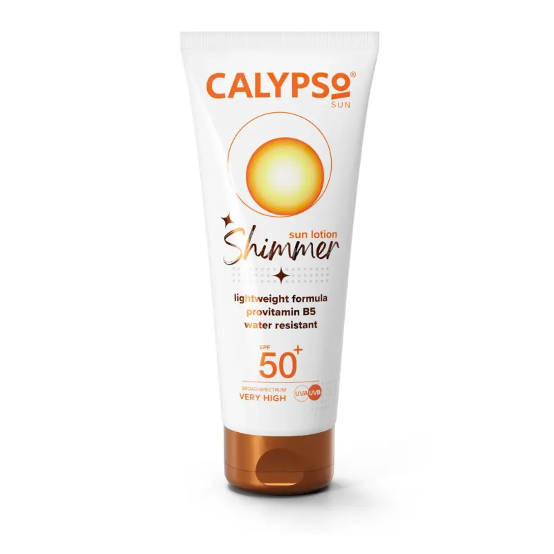 SPF 50 sun lotion with a shimmering finish for radiant skin protection.