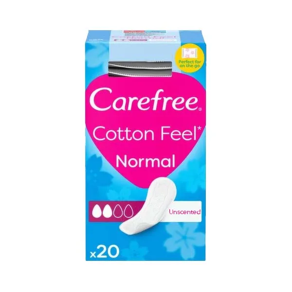 Cotton-feel unscented pantyliners for daily freshness and comfort.