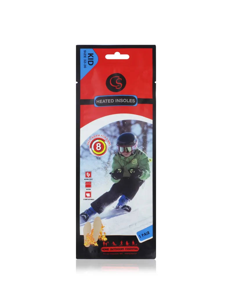 Battery-powered heated insoles designed to keep children's feet warm and comfortable in cold conditions.