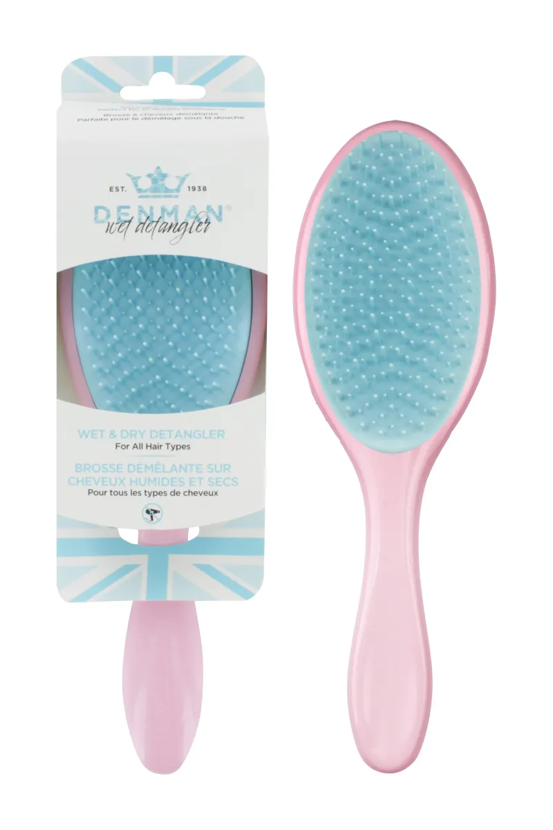 Denman D95 Pink Crush Wet & Dry Detangler is a versatile hairbrush designed to gently detangle and smooth hair both wet and dry. Its flexible bristles minimize breakage and reduce discomfort while brushing, making it perfect for all hair types. Ideal for home use, travel, or professional salon styling.