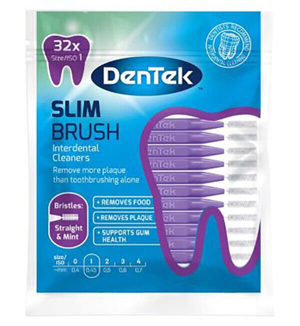 DENTEK PURPLE INTERDENTAL SLIM BRUSHES MINT STRAIGHT