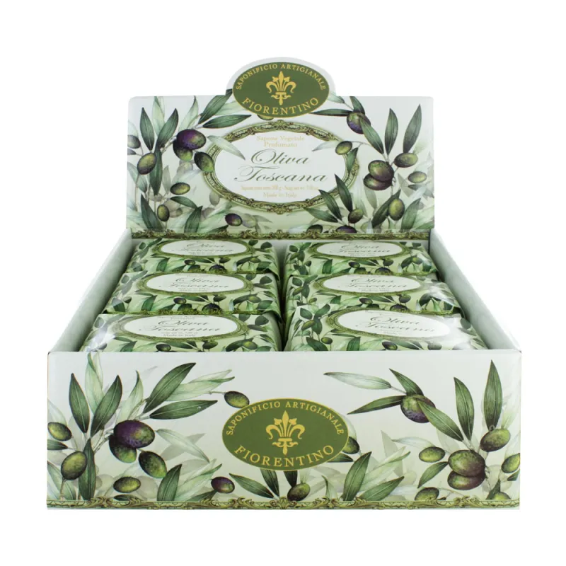Olive oil-based soaps in a 12-pack for nourishing care.