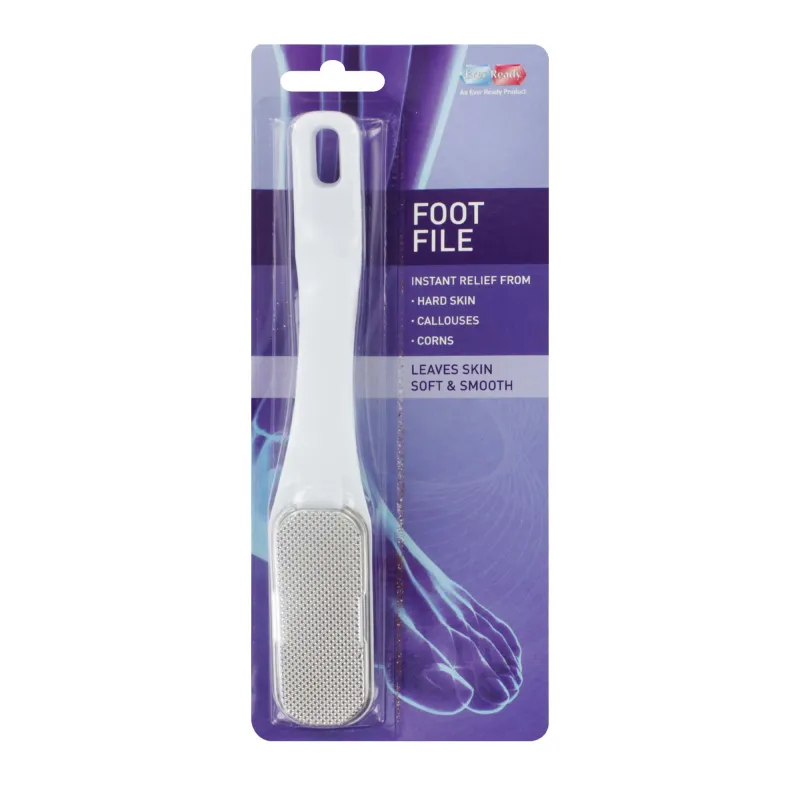 Durable foot file designed to smooth rough skin and remove calluses for softer, healthier feet.