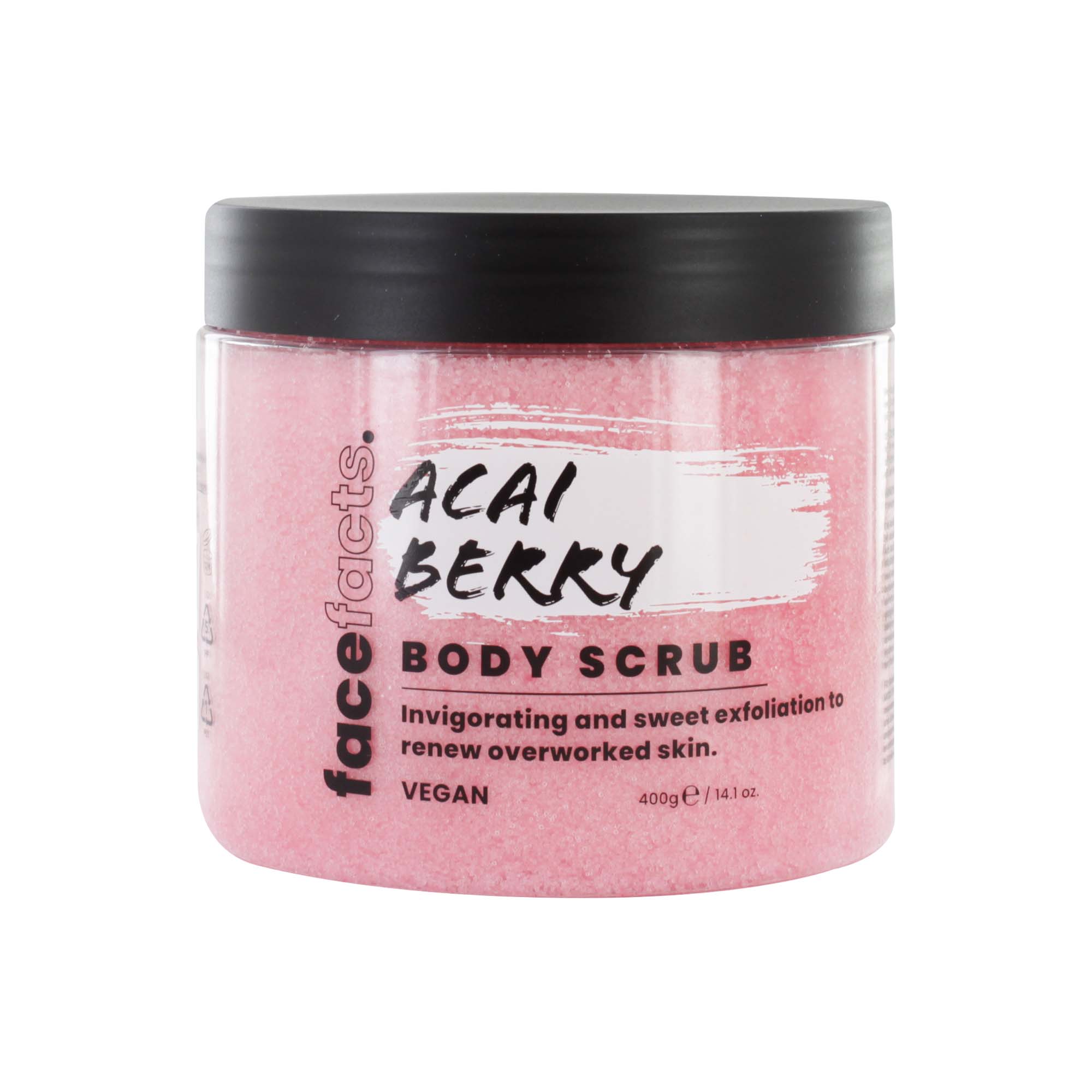 An exfoliating body scrub enriched with acai berry extract to gently buff away dead skin cells, leaving skin feeling smooth, revitalised, and refreshed. The berry scent invigorates while promoting a healthy-looking glow.
