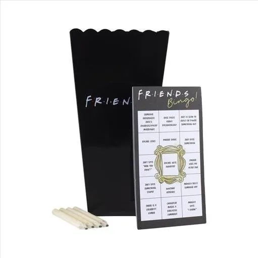 Bring game night to life with the Friends Bingo Game Popcorn Bucket! Inspired by the iconic TV show Friends, this fun set includes a themed bingo game and a reusable popcorn bucket — perfect for fans of the classic series. Ideal for parties, family nights, or gifting, it combines entertainment and nostalgia in one playful package. Gather your friends, grab some snacks, and get ready for a night of laughter and fun!