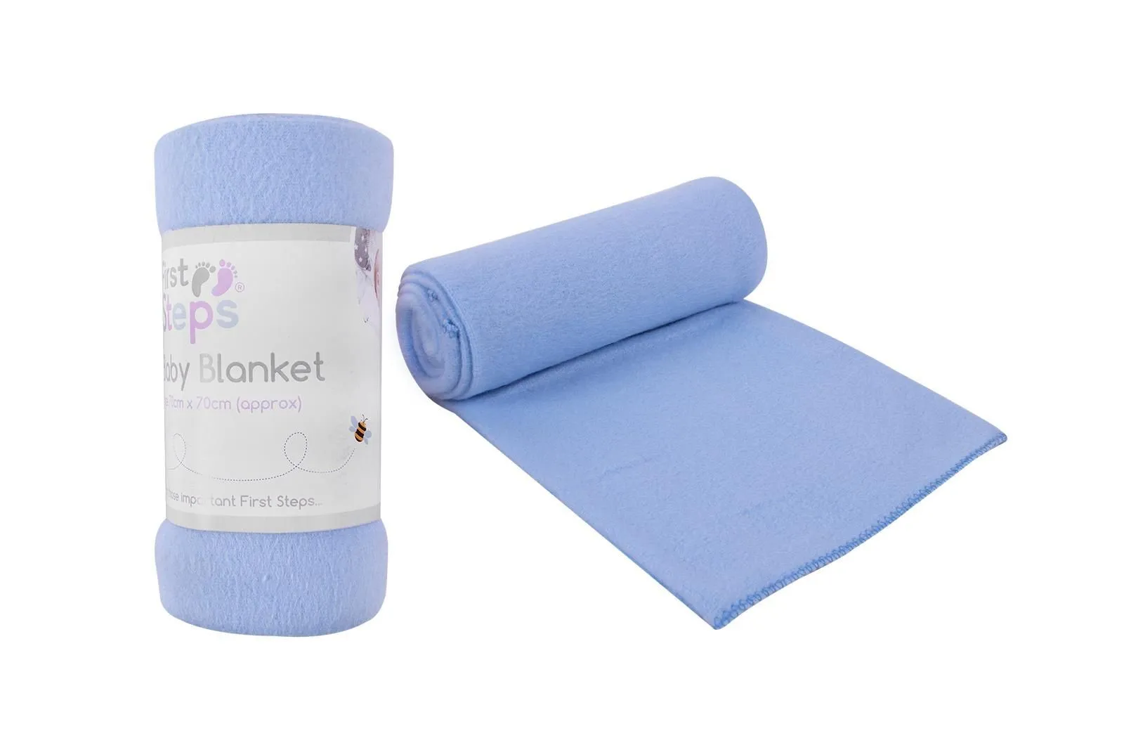 Soft blue baby blanket measuring 70x70cm for warmth and comfort.