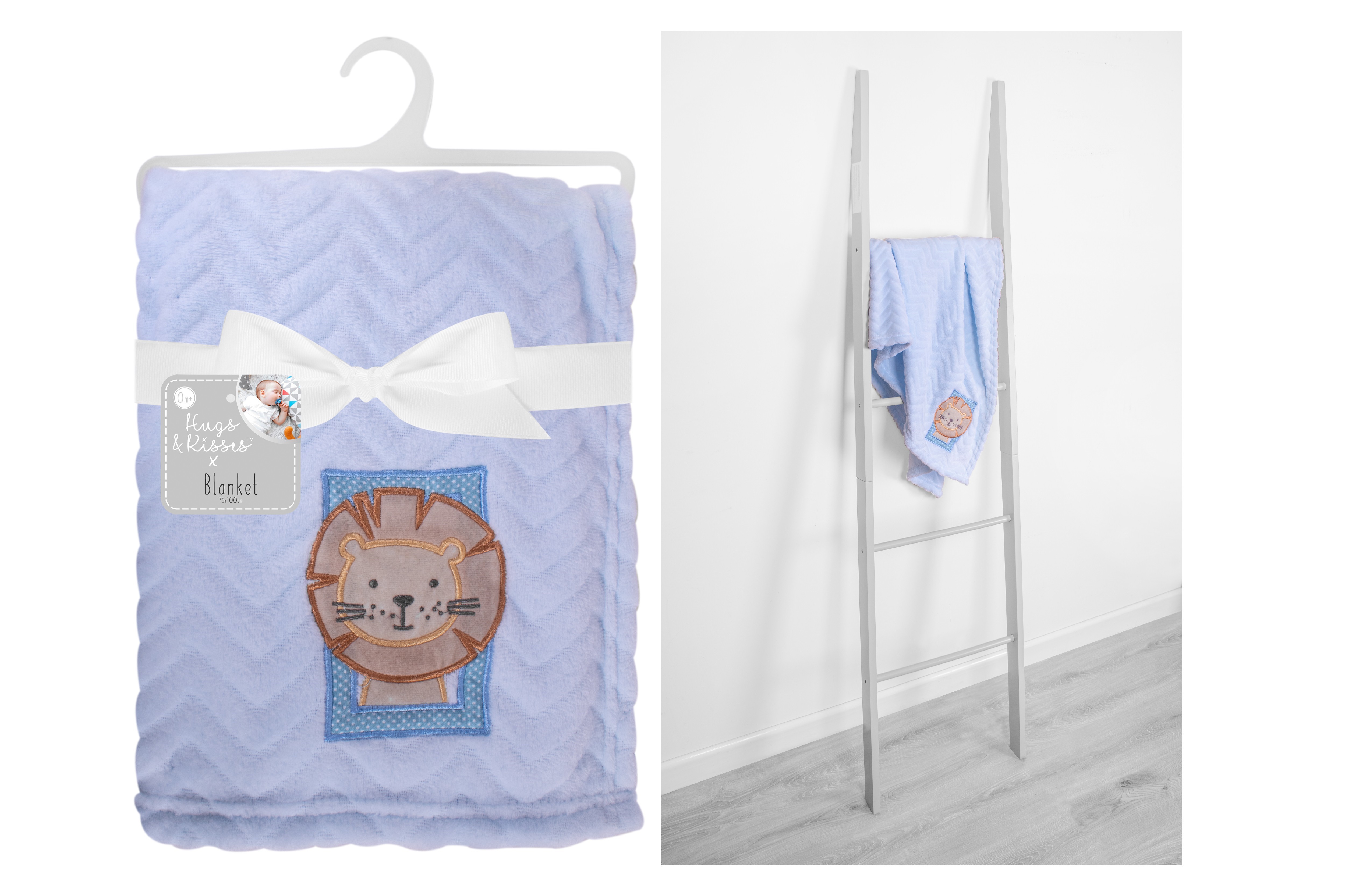 Soft and cozy blue baby blanket sized 75x100cm, ideal for comfort and warmth.