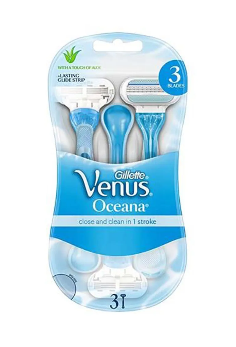 Pack of 3 Venus 3 Oceana razors with colourful handles.