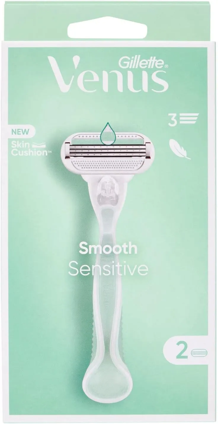 A pack of two disposable razors designed for smooth, gentle shaving on sensitive skin.