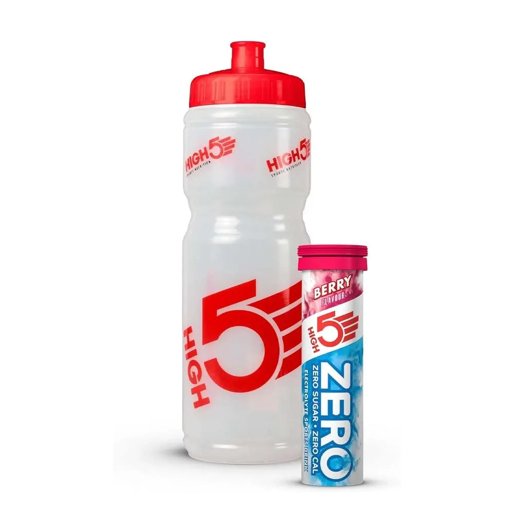 A complete hydration set featuring a reusable sports bottle and zero-sugar electrolyte tablets to support fluid balance during exercise. Ideal for convenient, on-the-go hydration before, during, and after activity.