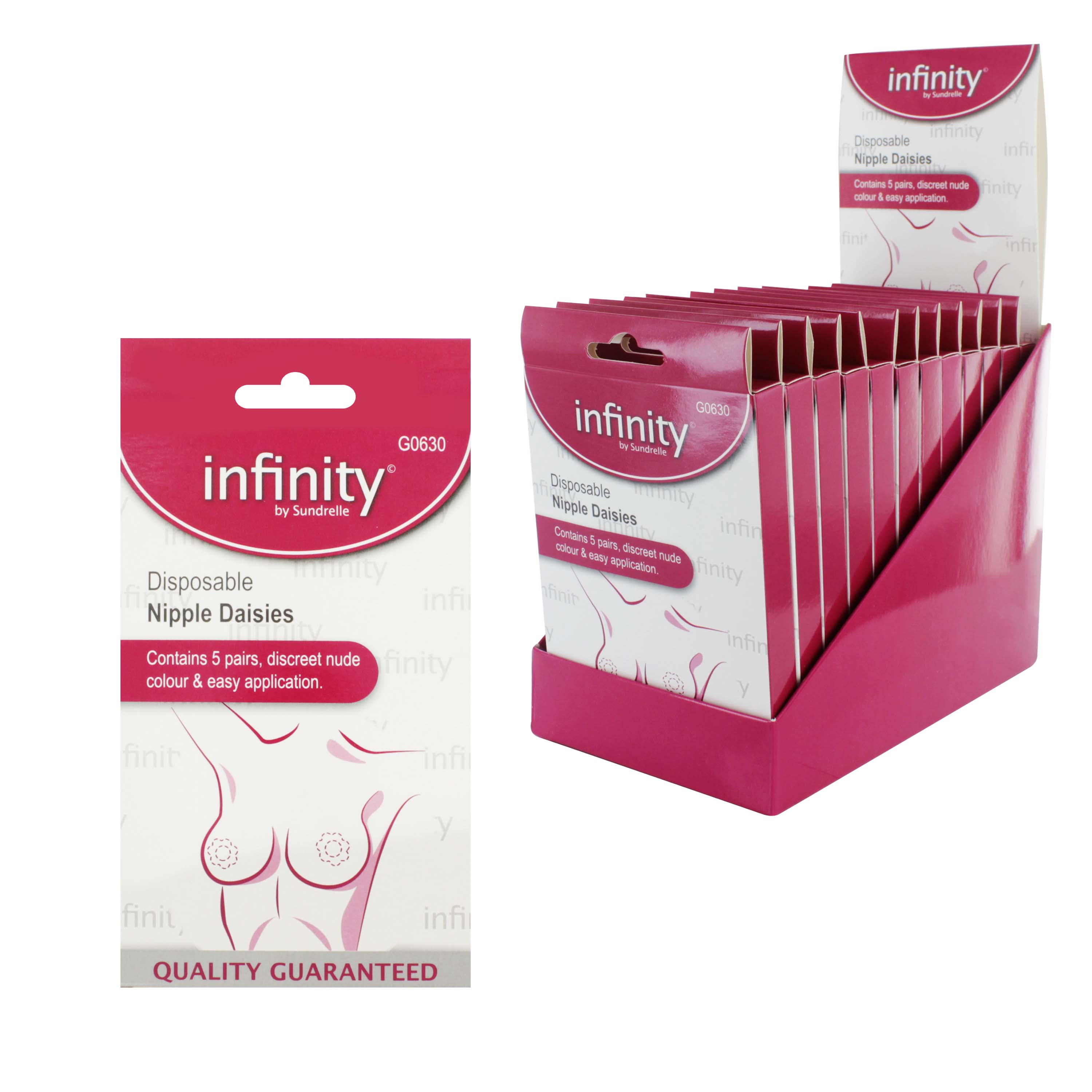Discreet self-adhesive nipple covers for a smooth look under clothing.