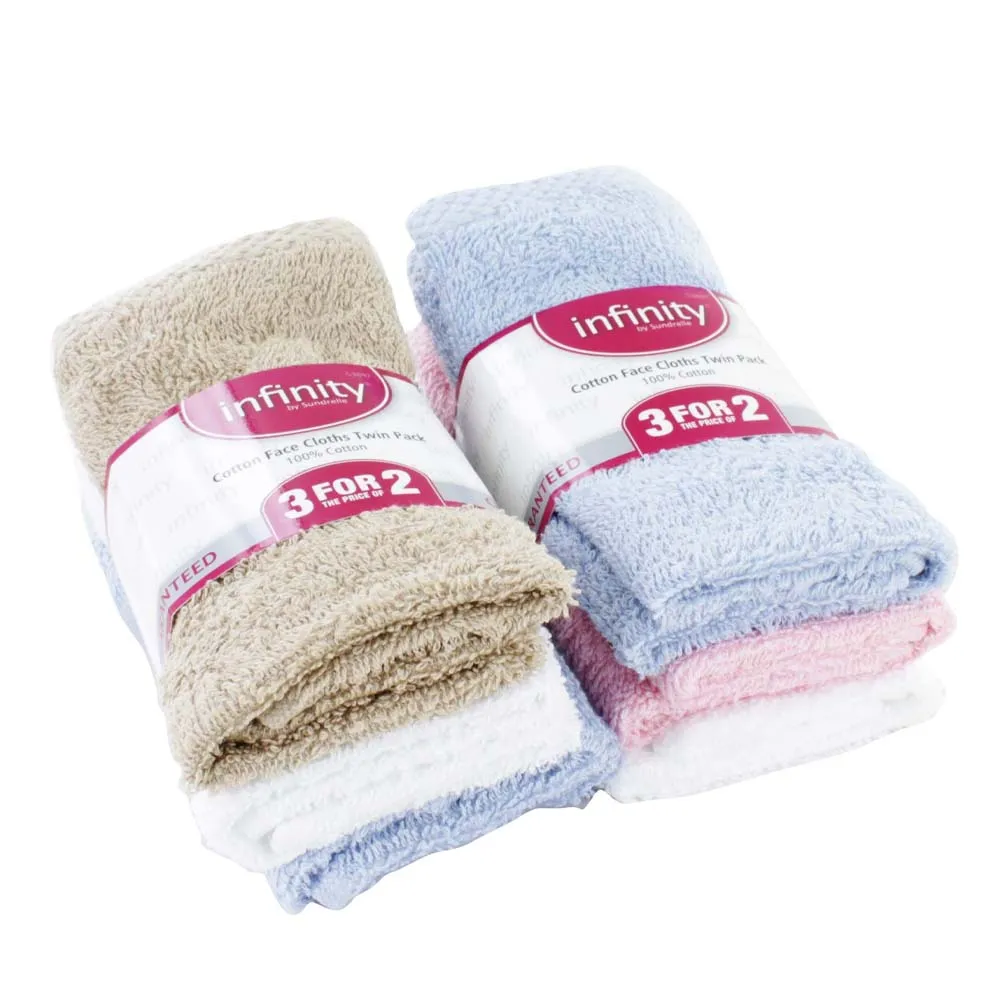 A multi-pack of plain face cloths for everyday cleansing.
