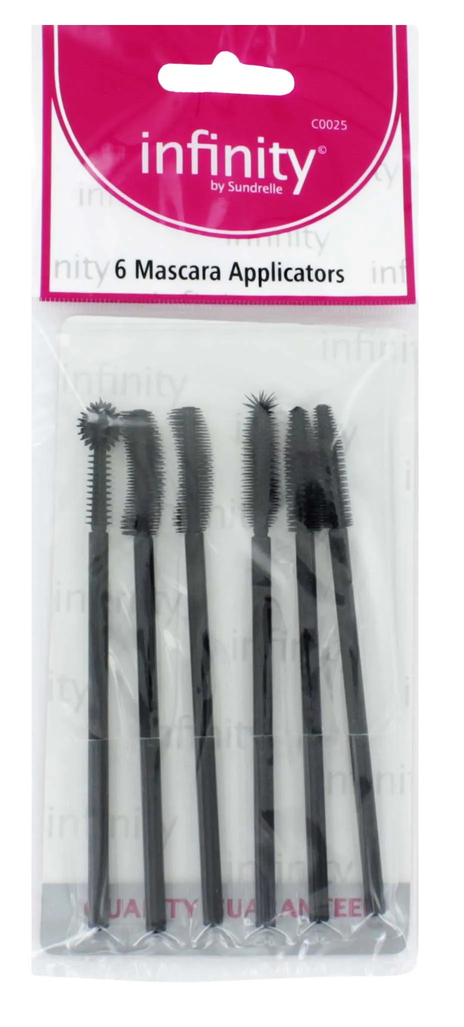 Pack of six disposable mascara applicators for hygienic makeup application.