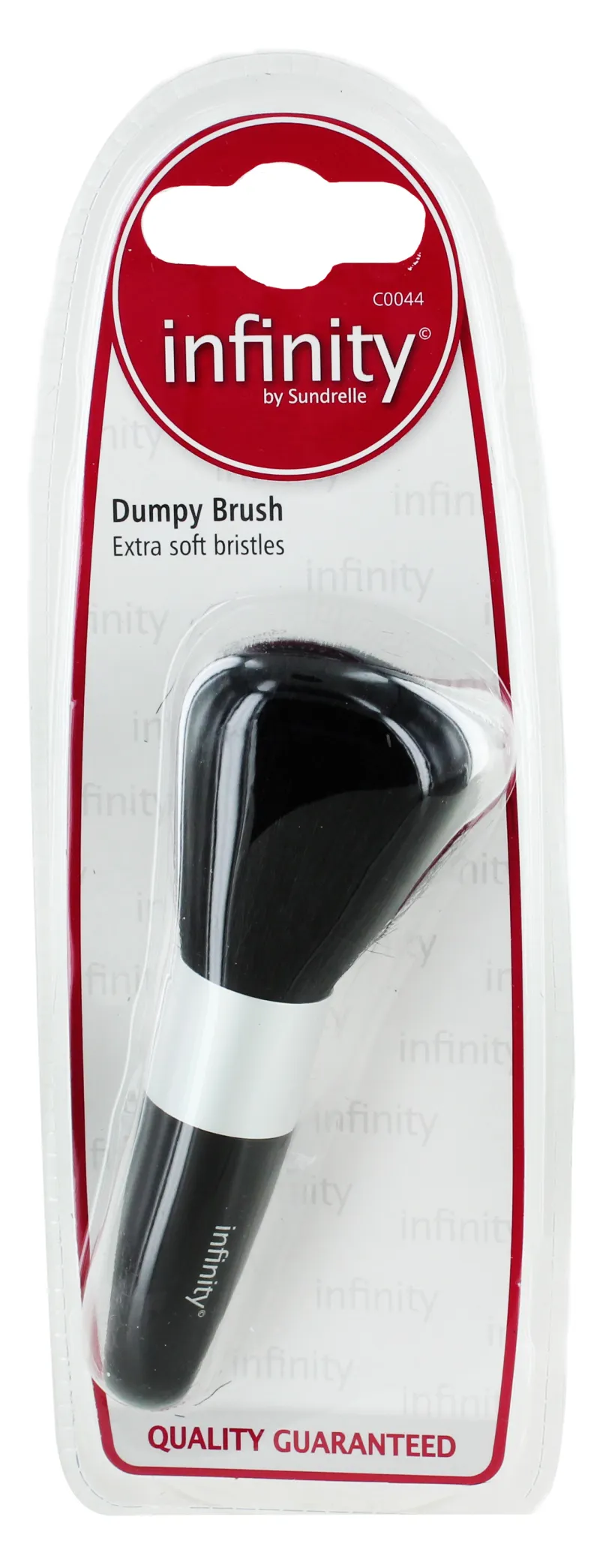 Compact dumpy brush ideal for applying powders or blending makeup with ease.