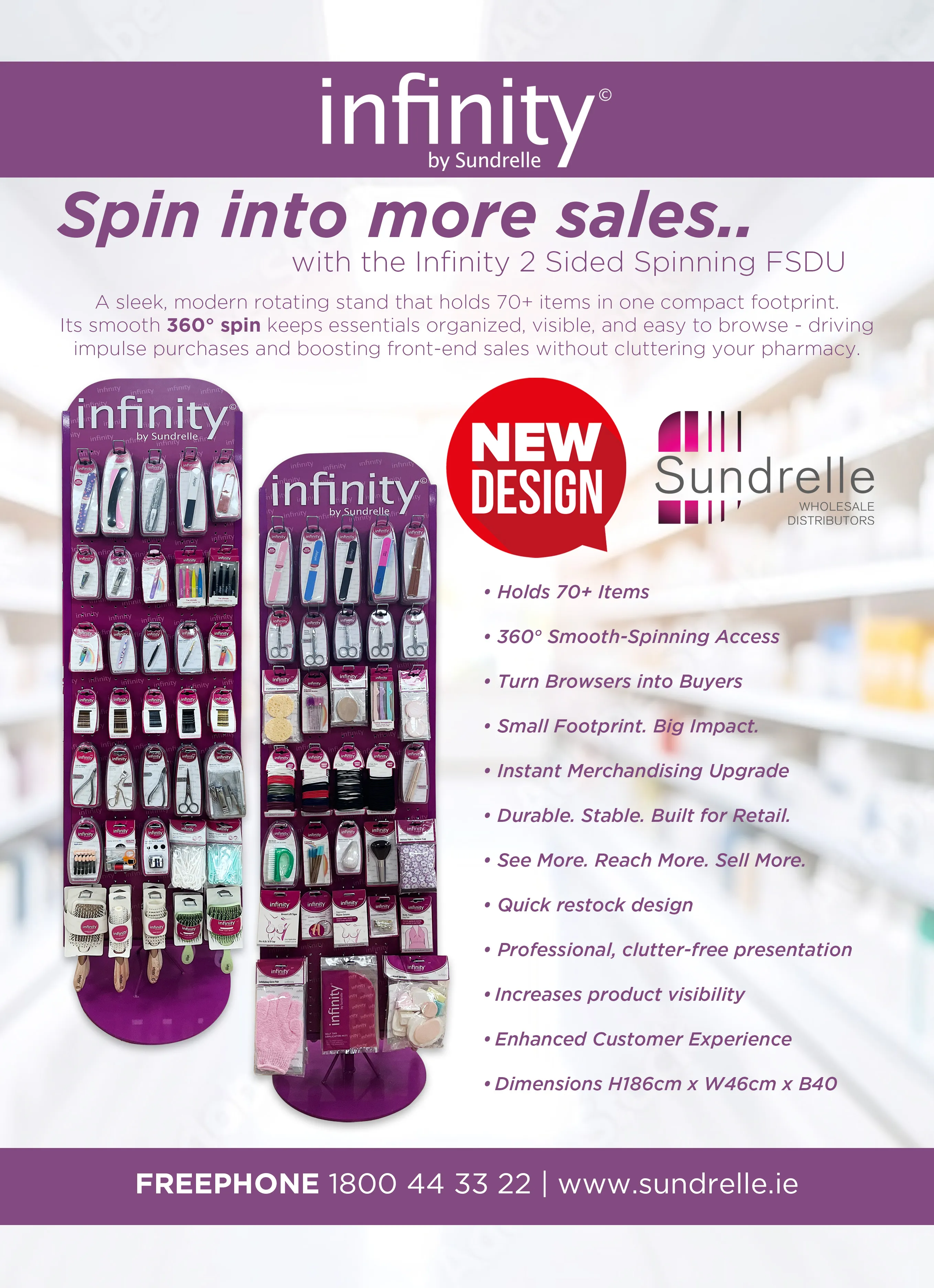 Please contact your rep for more information on the new 2-Sided Spinning Infinity Stand