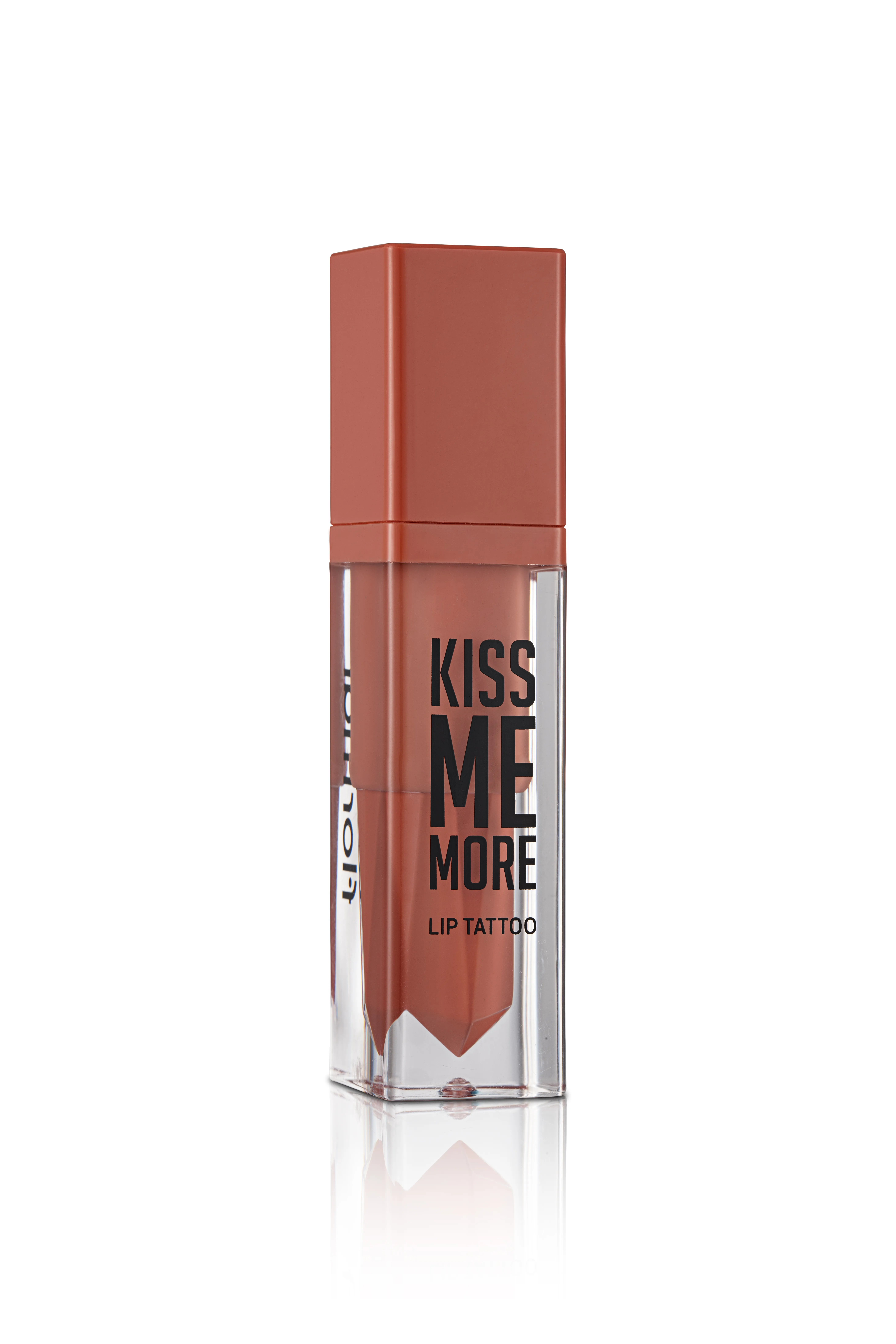 Caramel shade lip tattoo lipstick with long-lasting wear.
