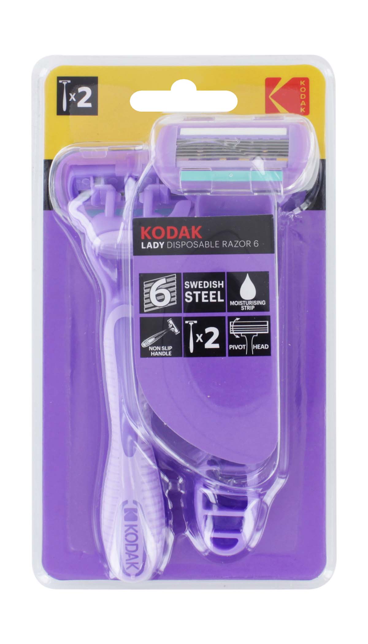 Pack of 2 Kodak lady razors with six blades for an ultra-close shave.
