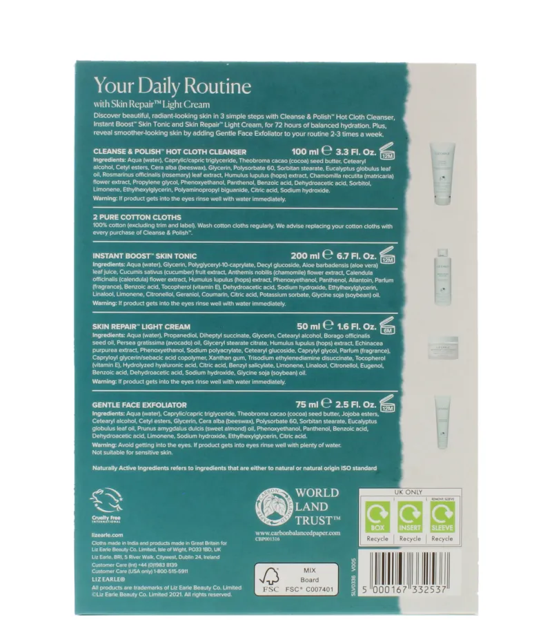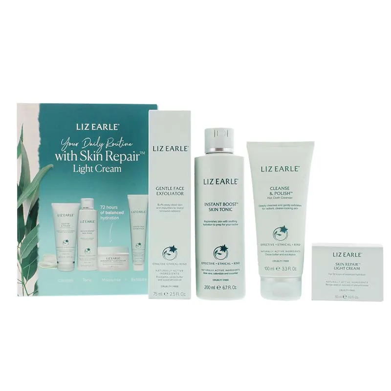 A premium skincare set featuring Liz Earle favourites, designed to provide a complete daily routine with the iconic Skin Repair range for balanced, nourished, and radiant skin.
