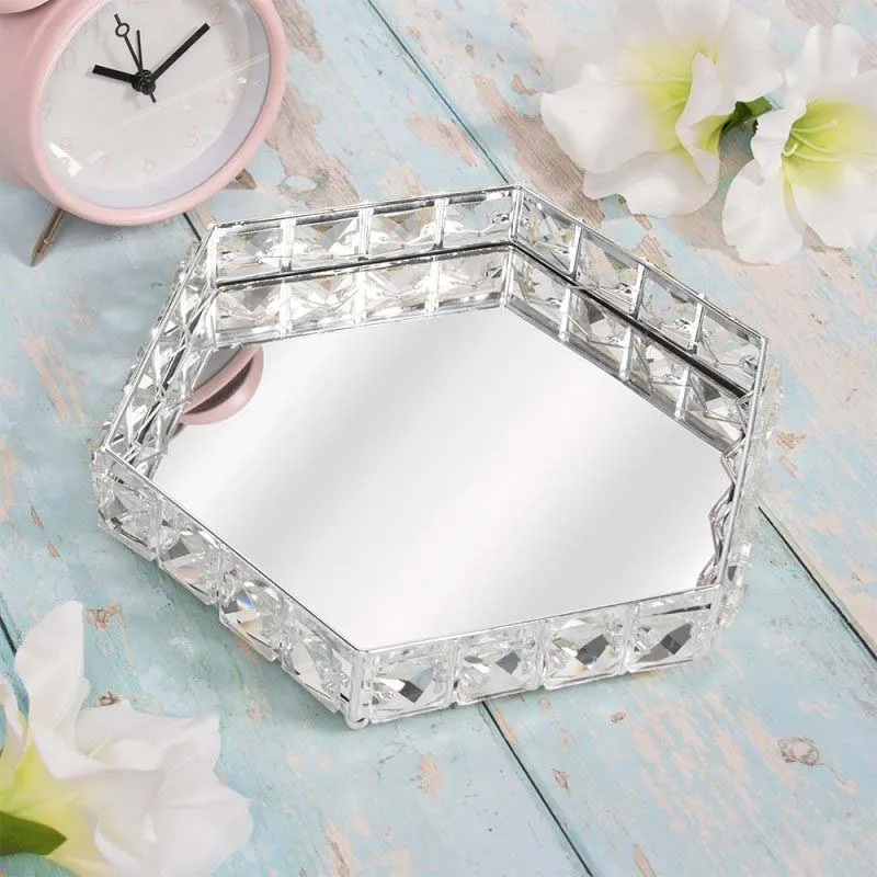 LP47997 SILVER MIRROR CRYSTAL TRAY 22.5cm