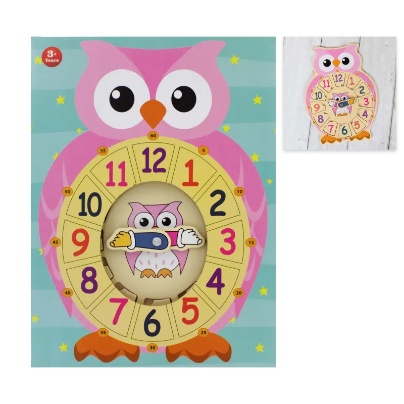LP62046 WOOD LEARNING CLOCK OWL PINK
