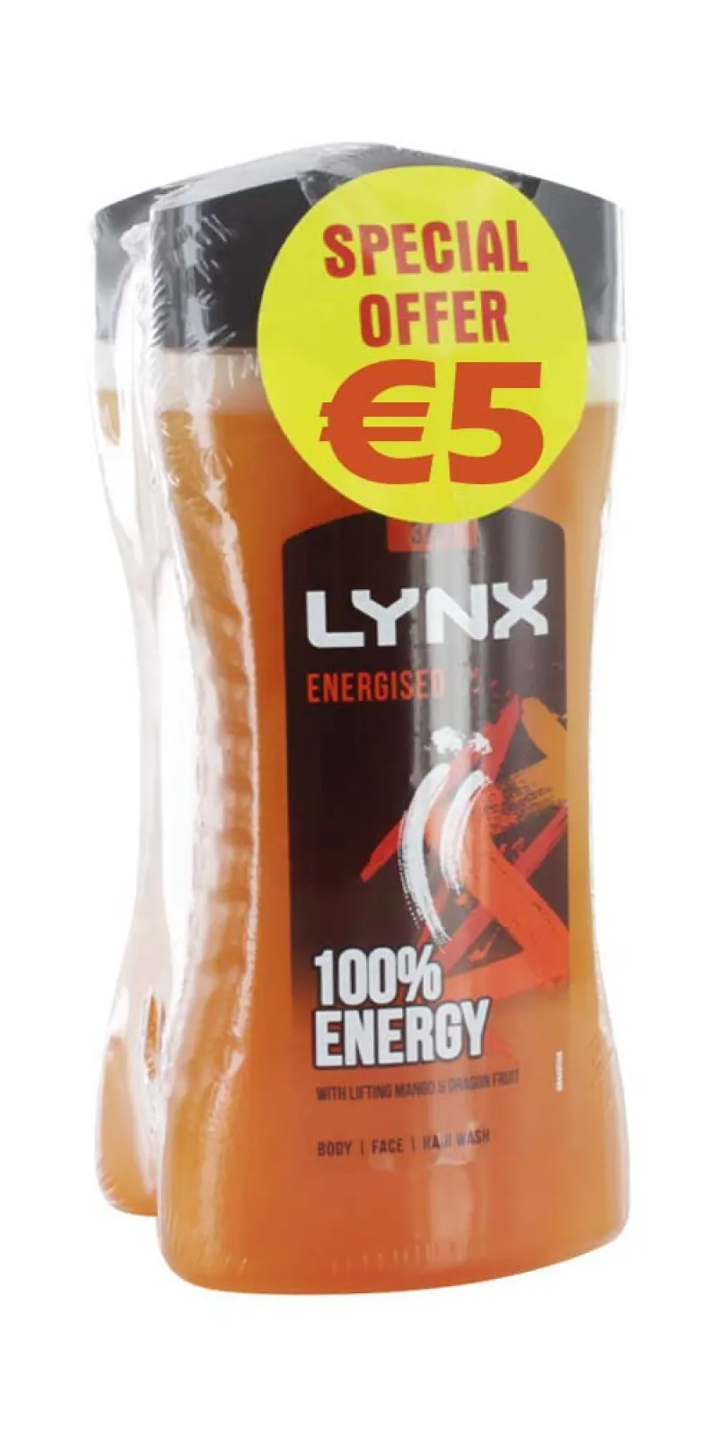 LYNX ENERGISED BODY WASH 225ml TWIN PK