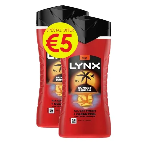 LYNX Sunset Fresh Shower Gel Twin Pack offers double the freshness and double the value. Each 225ml bottle delivers an energising cleanse with a crisp, uplifting fragrance inspired by summer sunsets. This rich-lathering shower gel effectively cleanses the skin while leaving you feeling refreshed, confident, and revitalised. Ideal for daily use, the twin pack is perfect for home, gym, or stocking up on your favourite LYNX scent.