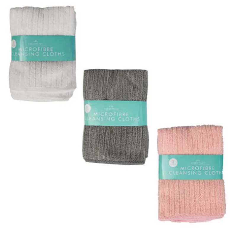 Pack of three soft microfibre face cloths for gentle skin cleansing.