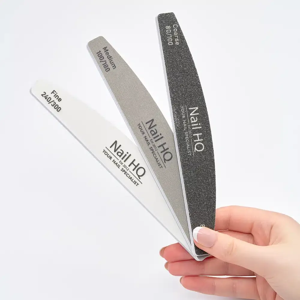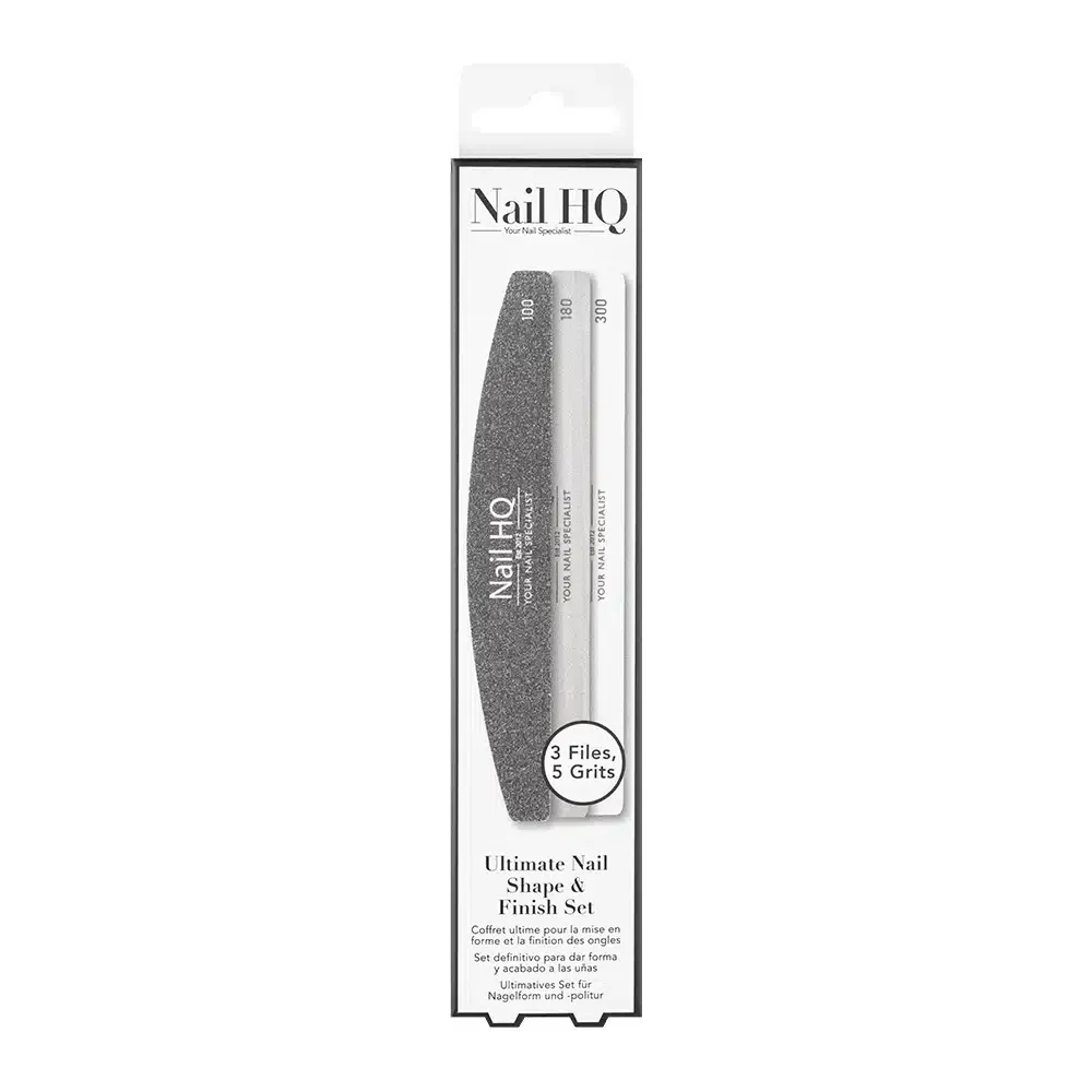 A 3-piece nail file set designed to shape, smooth, and finish nails with professional results at home. Each file features different grit levels for versatile use, from refining acrylic or gel nails to gently buffing natural nails for a smooth finish.