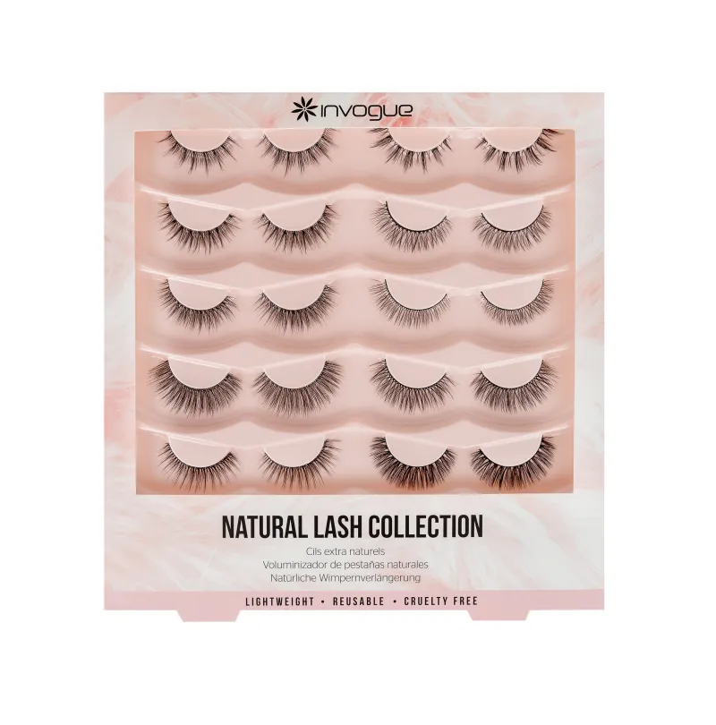 Boxed set of 10 pairs of natural false lashes for versatile everyday use.