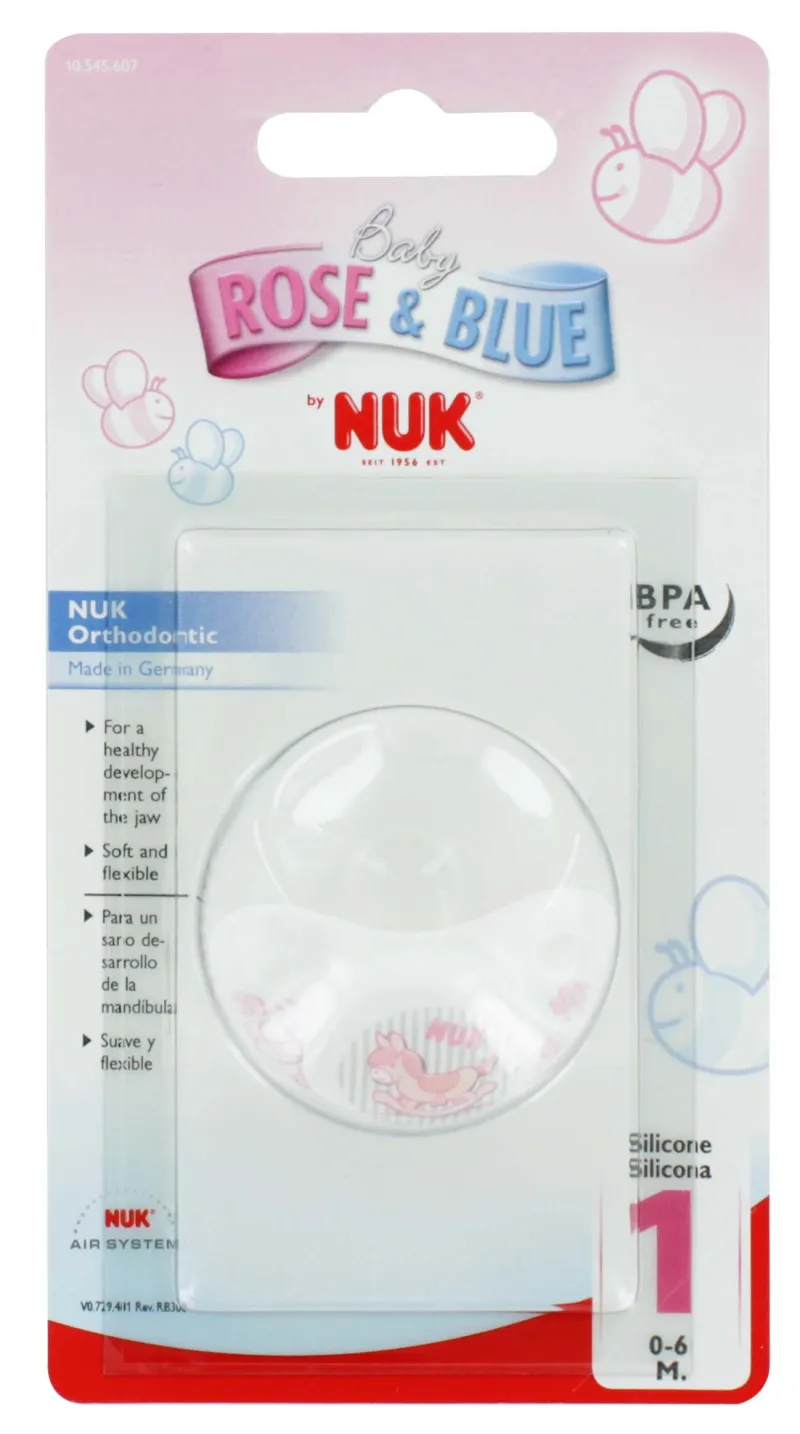NUK SOOTHERS ROSE & BLUE SILICONE ORTHODONTIC 0-6 GIRL