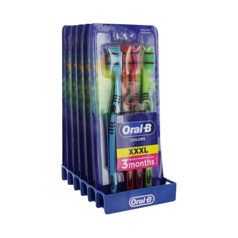 A convenient pack of four manual toothbrushes in assorted colours, designed for effective daily cleaning. Ideal for family use, helping maintain good oral hygiene with comfortable grip and reliable performance.