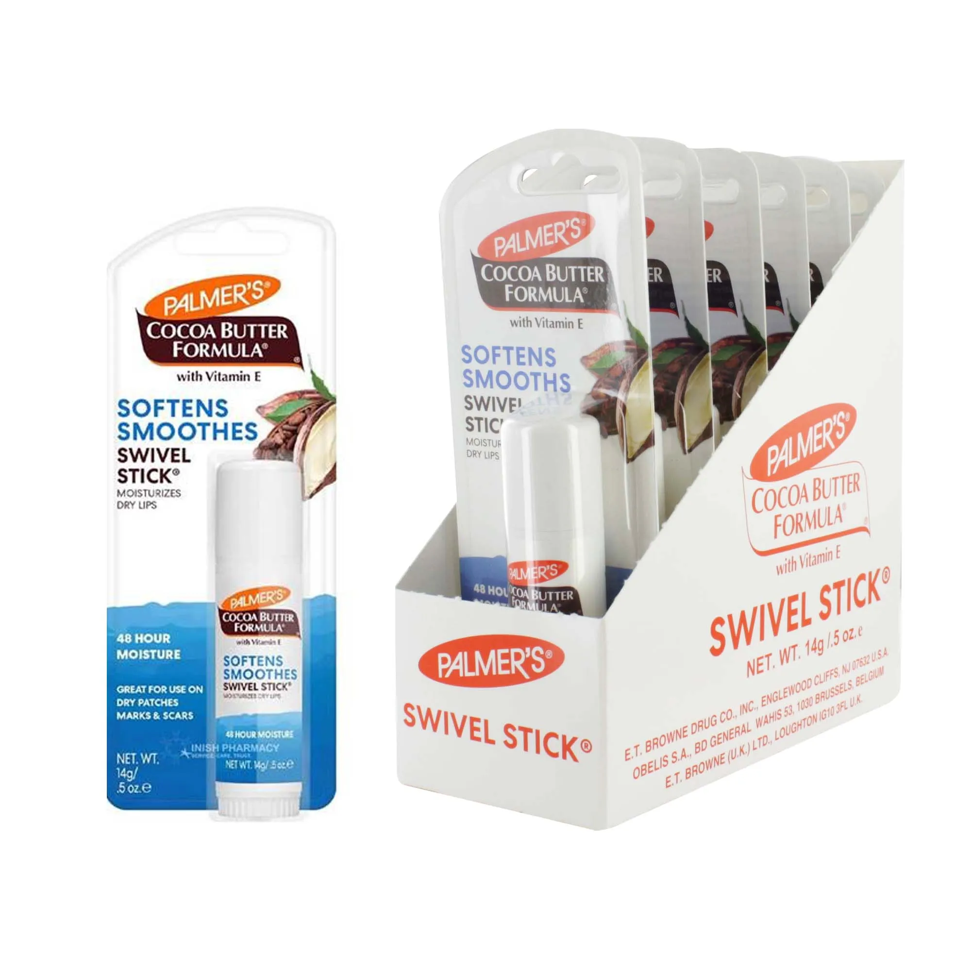 Moisturizing swivel stick that softens and soothes dry skin and lips.